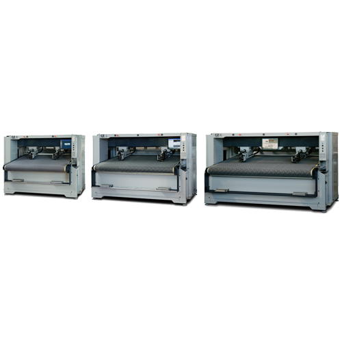 -lhas de corte com faca oscilante, com esteira transportadora e cabeças de corte duplas, com área de trabalho inclinada integrada com área de corte ampliada.